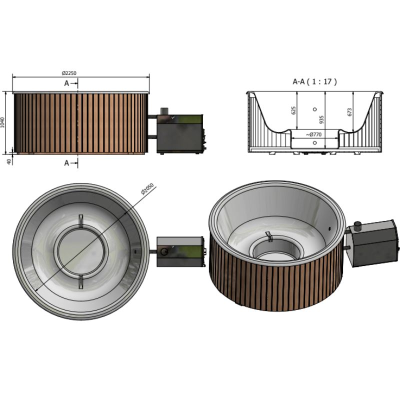 Wymiary: Śr. zewn. 225 cm | Śr. wew. 200 cm | Gł. 93,5 cm | Wys. 104 cm