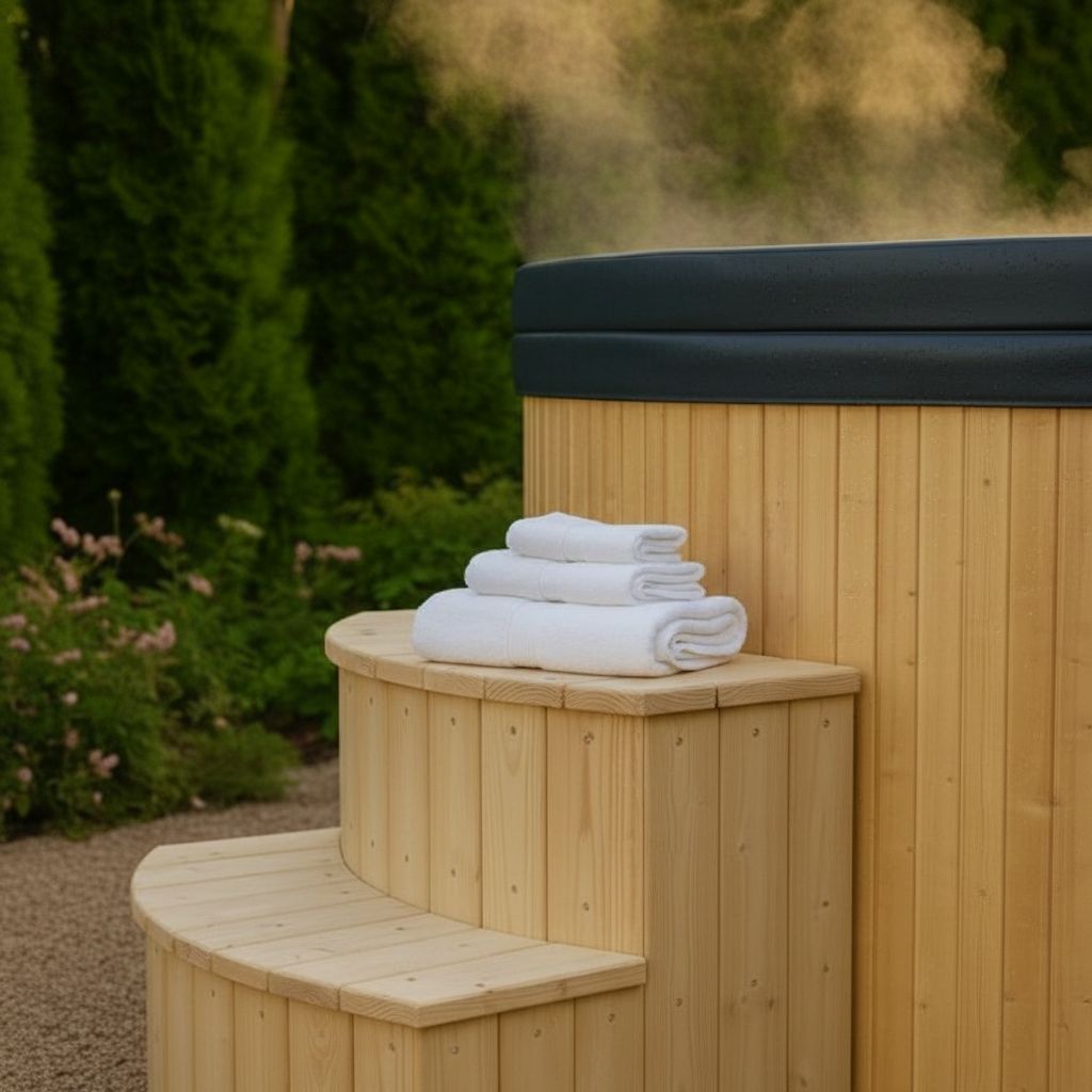 Wysokiej jakości drewno świerkowe nie tylko nadaje balii naturalny wygląd, ale także cechuje się trwałością, odpornością na wilgoć oraz dobrymi właściwościami termoizolacyjnymi, idealnymi do użytku przez cały rok.