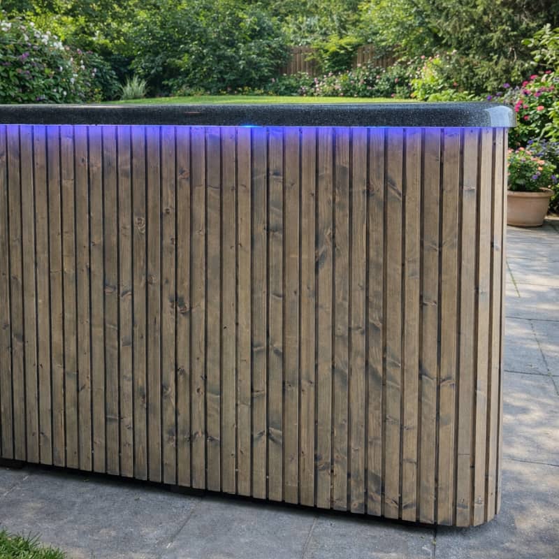 Solidna konstrukcja z impregnowanego świerku skandynawskiego i granitowy wkład 3D z włókna szklanego gwarantują trwałość oraz elegancki wygląd. Idealna dla 7–8 osób, stanowi połączenie luksusu, komfortu i nowoczesnego designu.
