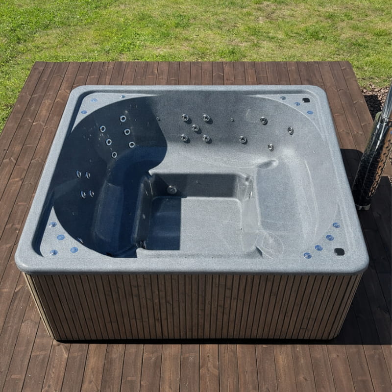 Balia QUADRO GRANIT 3D 220 x 220 cm z piecem zintegrowanym to ekskluzywna balia ogrodowa stworzona z myślą o relaksie w każdej porze roku.