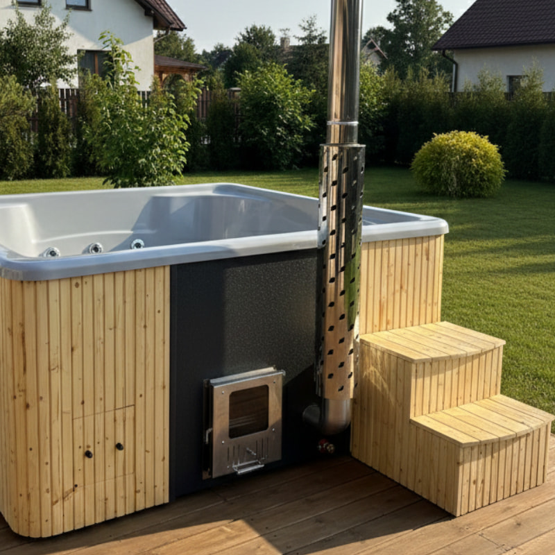 Balia kwadratowa 220 x 220 cm z wkładem z włókna szklanego z piecem zintegrowanym to trwałe i eleganckie rozwiązanie do relaksu w ogrodzie lub na tarasie. Odporne na osmozę włókno szklane ułatwia czyszczenie i zapewnia długowieczność. Piec 26 kW szybko nagrzewa wodę, a 2-metrowy komin z osłoną zwiększa bezpieczeństwo użytkowania. Możliwość personalizacji i dodatkowego wyposażenia pozwala dopasować balię do indywidualnych potrzeb.