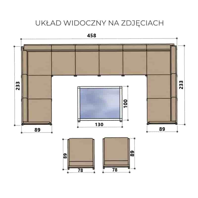Meble standardowe – zakupione w standardowych wymiarach, bez zmian w konstrukcji, o standardowych piankach oraz z tkaninami na poduszkach siedziskowych standardowych.