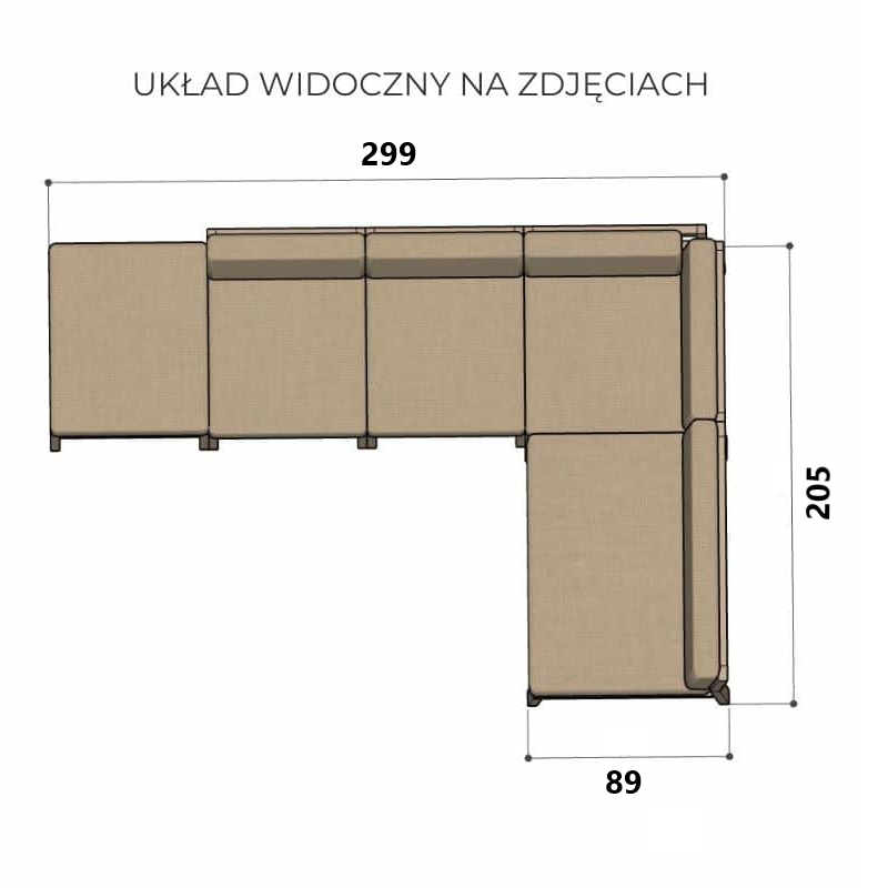 Głównym elementem tego zestawu jest narożnik, który został dostosowany do indywidualnych preferencji klienta, gwarantując idealne dopasowanie do przestrzeni. Dodatkowo, moduł wewnętrzny został poszerzony, co umożliwiło stworzenie jeszcze szerszego siedziska, zapewniając więcej miejsca dla Twoich gości.