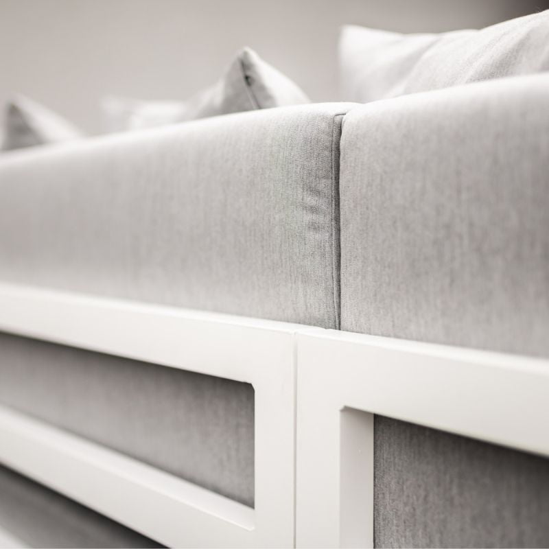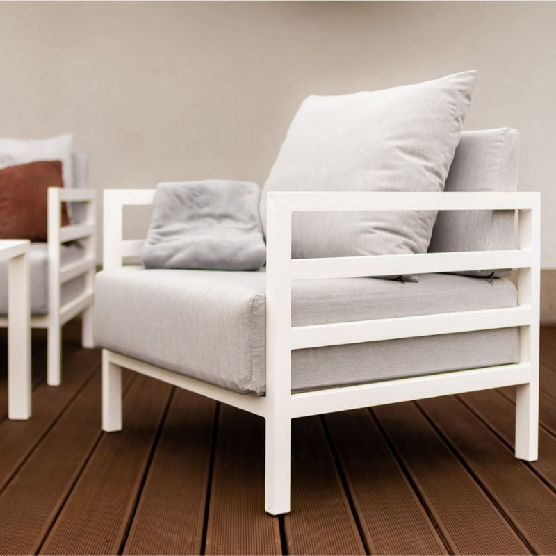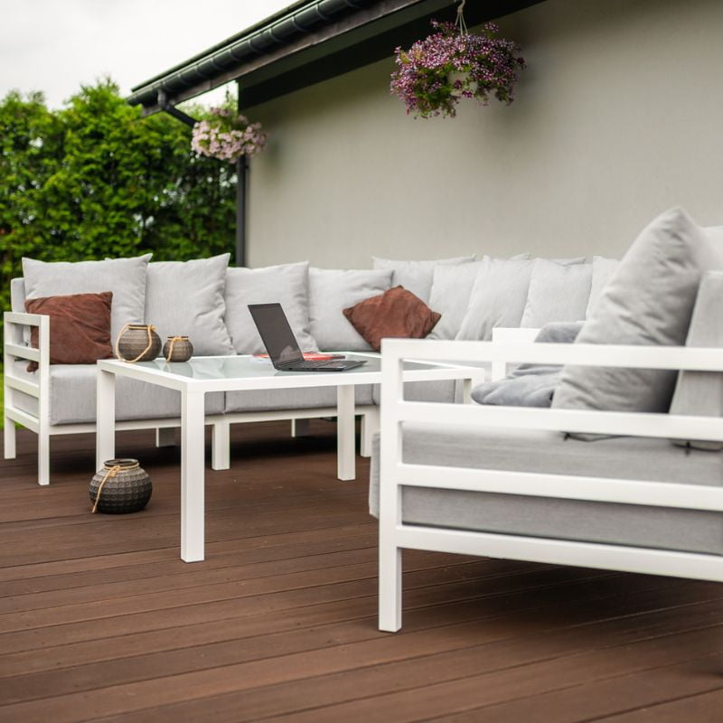 Jest to nowoczesna i lekka konstrukcja, która została zaprojektowana z myślą o funkcjonalności i uniwersalności. Idealne do odpoczynku w swoim ogrodzie lub na dużym tarasie, a ich biały kolor i dekoracyjne poduszki na pewno przyciągną uwagę i dodadzą elegancji Twojej przestrzeni. Linia Modern jest bardzo popularna ze względu na jej uniwersalność – jest idealna do organizowania eleganckich kolacji oraz relaksu przy lampce ulubionego wina.