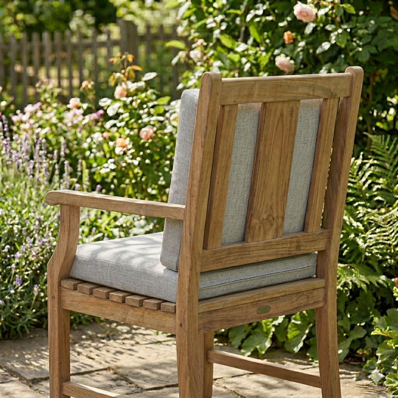 Poduszka ogrodowa oparciowa do użytku zewnętrznego, wykonana z tkaniny Sunbrella odpornej na UV i warunki atmosferyczne. Miękkie wypełnienie zapewnia komfort, a niewidoczny zamek maskujący ułatwia użytkowanie.