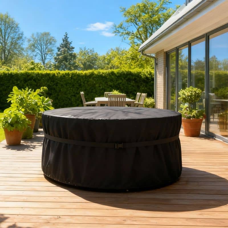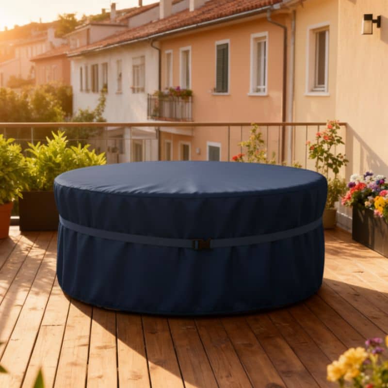 Pokrowiec idealnie dopasowuje się do okrągłych mebli ogrodowych, chroniąc je przed zmienną pogodą i codziennym użytkowaniem.