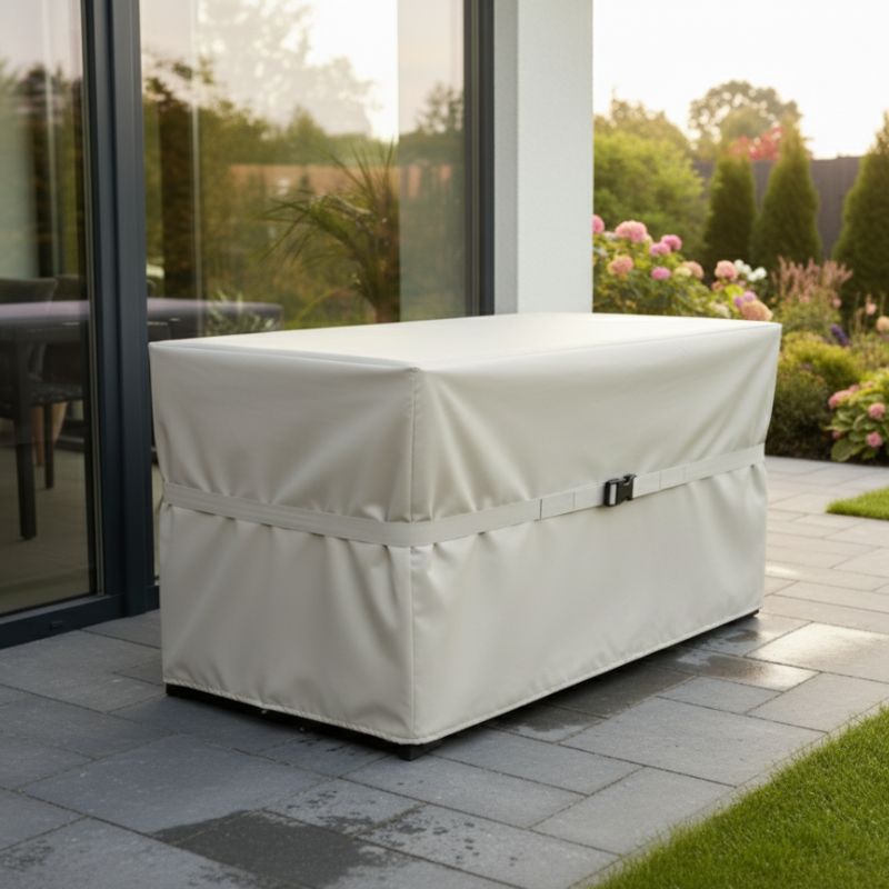 Pokrowiec ochronny STANDARD na skrzynię ogrodową – rozmiar „M” to dzięki niemu skrzynia pozostanie czysta i sucha po każdym załamaniu pogody sezonie letnim. 🌧️🌧️