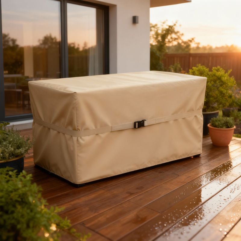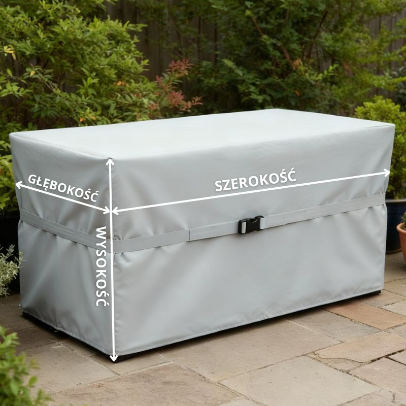 Pokrowiec ochronny STANDARD na skrzynię ogrodową – rozmiar „XL” to dzięki niemu skrzynia pozostanie czysta i sucha po każdym załamaniu pogody sezonie letnim. 🌧️🌧️
