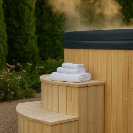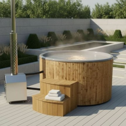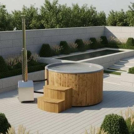 Drewniana balia ogrodowa z piecem — Ciepło i komfort przez cały rok