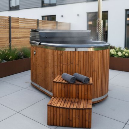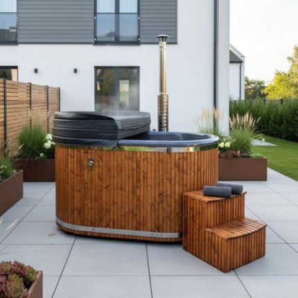 Drewniana balia ogrodowa z piecem — Ciepło i komfort przez cały rok