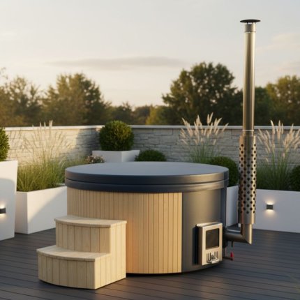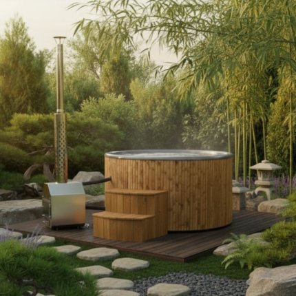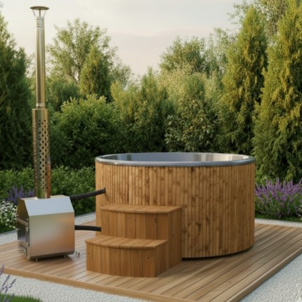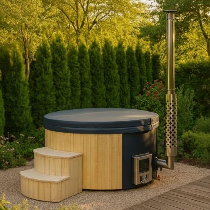 Drewniana balia ogrodowa z piecem — Ciepło i komfort przez cały rok
