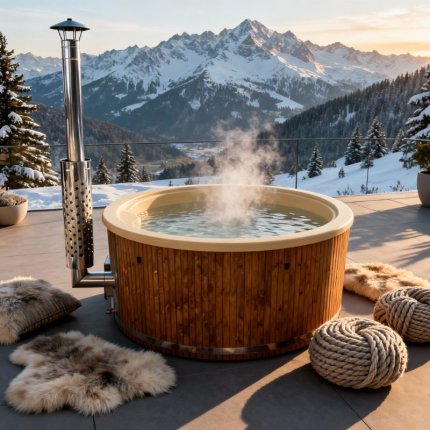Drewniana balia ogrodowa z piecem — Ciepło i komfort przez cały rok