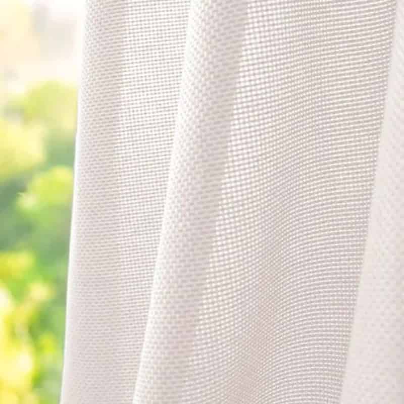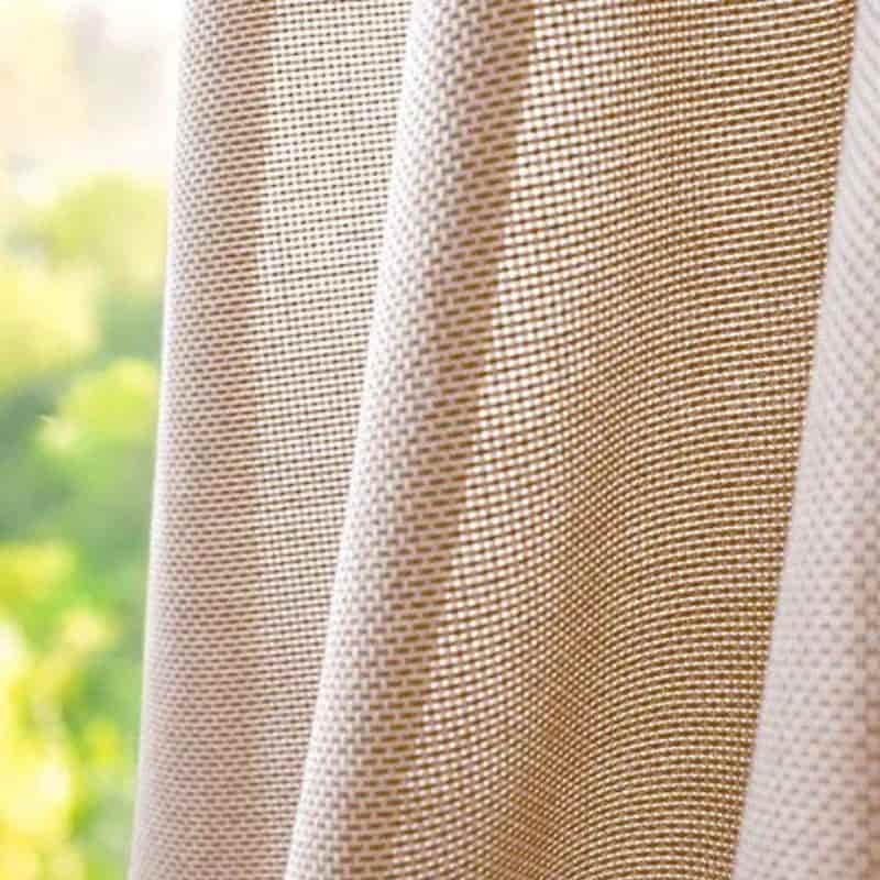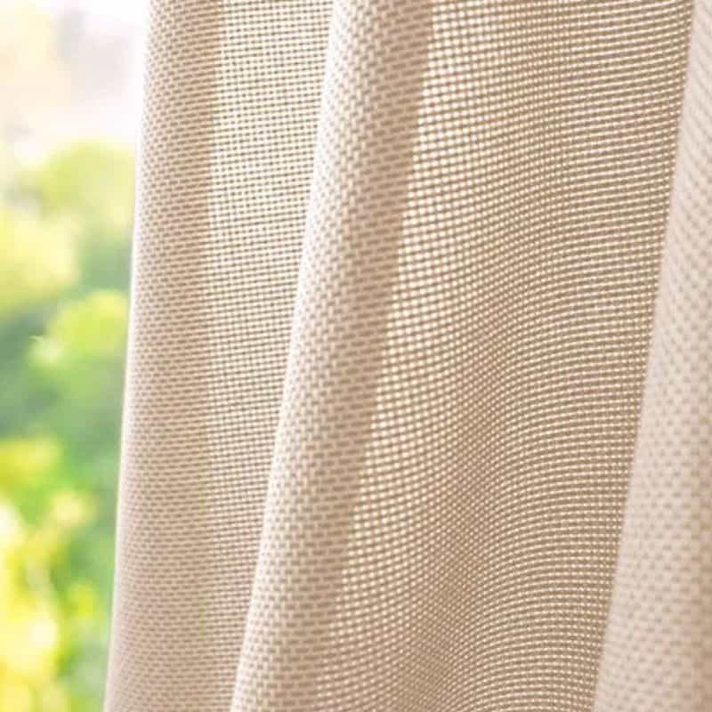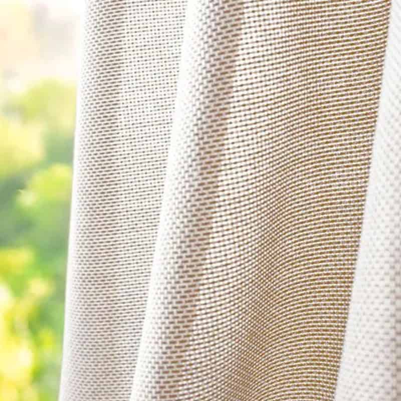 Tkanina Mild oferuje wyraźną, ziarnistą strukturę, która tworzy ciepłą atmosferę i delikatnie filtruje światło.