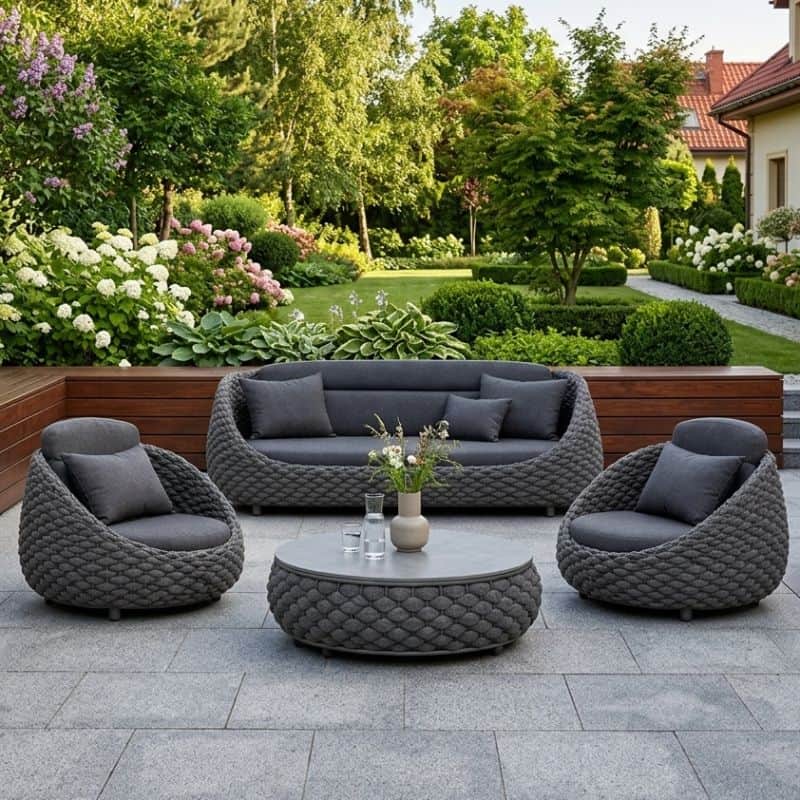 Zmień swój taras w luksusowy salon pod gołym niebem. Grafitowy zestaw Marino Lounge to połączenie minimalistycznego designu z bezkompromisową wygodą.